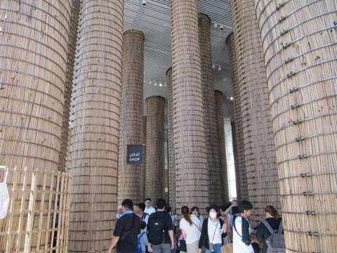 (178-3) アラブ首長国連邦の宝物:ナツメヤシ。 アラブ首長国連邦のパビリオンにはナツメヤシの枝を束ねた巨大な柱が林立し、同国の自然・文化・先端技術が展示されていました。 ナツメヤシは同国の長い歴史の中で人々の生活と社会を支えてきた貴重な樹木ですが、石油が発見された近代においても同国はナツメヤシとそれが生み出した文化に誇りを持ち、大切にしてきたことを象徴的に示していました。 |
